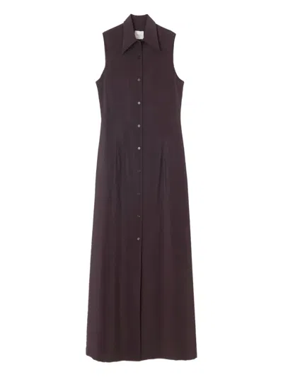 无袖纽扣开合超长连衣裙
