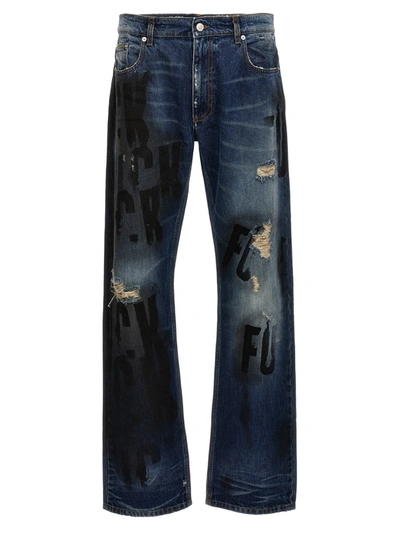 Men's Destroyed Distressed Straight-leg Jeans In Tan Denim Blue