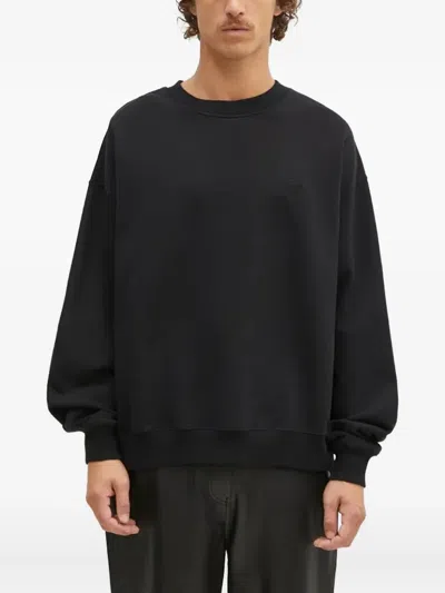 Treated Logo Crewneck Sweater Black Cotton Oversized Sweater With Logo - Treated Logo Crewneck Sweat