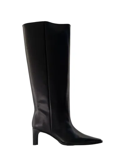 Saray Pointed Leather Boots In Black