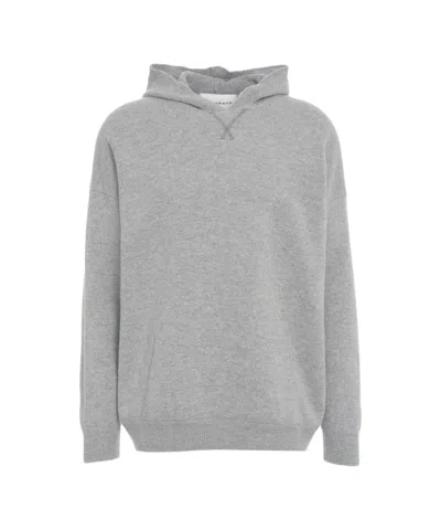 Relaxed Fit Knit Sweater With Hood And Kangaroo Pocket In Gray