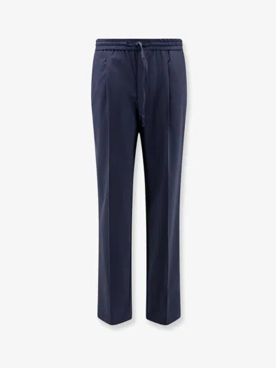 Virgin Wool Blend Trousers In Blue