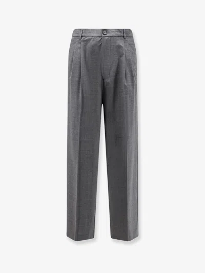Virgin Wool Blend Trousers In Gray