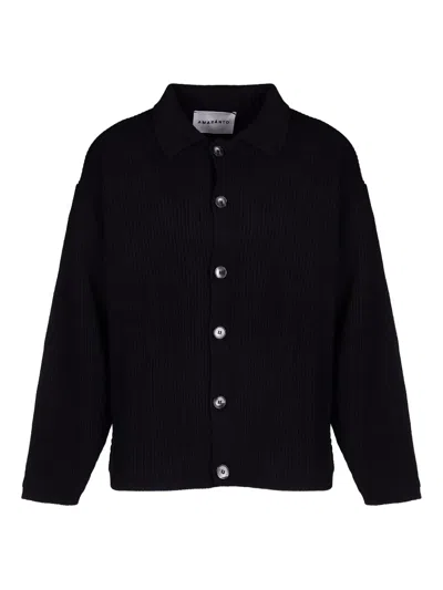 Multicolored Striped Knit Pullover With Polo Collar In Black