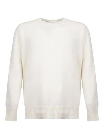 Cotton Sweater With Distressed Finishes In Yellow
