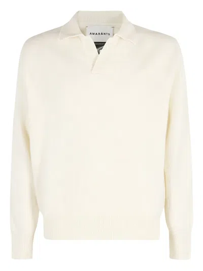 Amaranth V-neck Cardigan With Center Button Closure In White