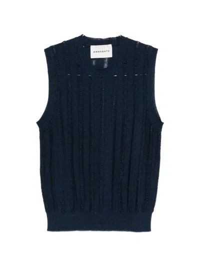 Navy Blue Crew Neck Vest With Openwork Effect