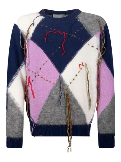 Cashmere And Wool Sweater With Polo Collar And Ribbed Cuffs In Blue