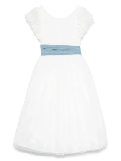 Kids' Floral-embroidered Tulle Communion Dress In White