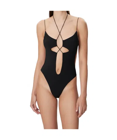 Hollow One Piece Swimsuit In Black
