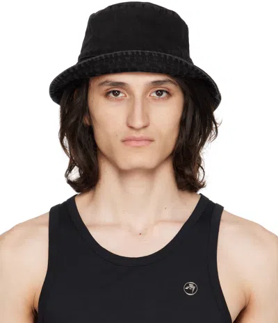 Solid Color Bucket Hat With Embroidered Contrasting Logo In Black