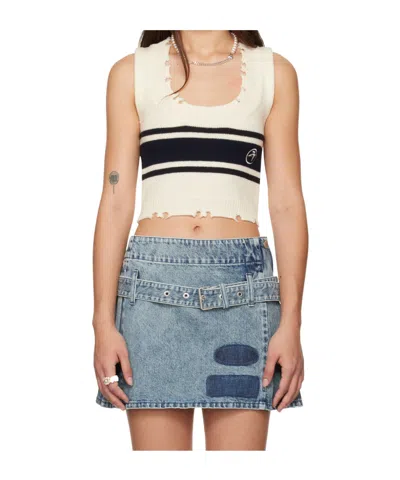 Off-white Destroyed Rib Round Neck Vest In Tofu