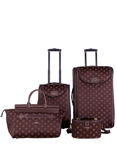 Fleur De Lis 5 Piece Spinner Luggage Set In Black