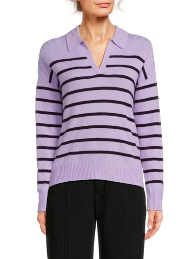 Women's Striped Cashmere Sweater In Grey Ice Blue