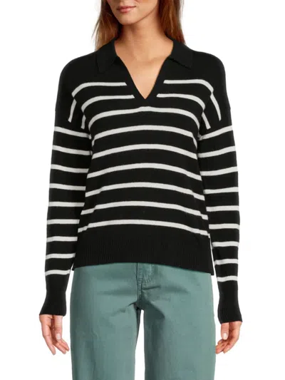 Women's Striped Cashmere Sweater In Black Ivory