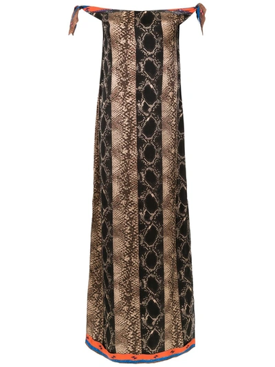 AMIR SLAMA OFF THE SHOULDER LONG DRESS - 棕色