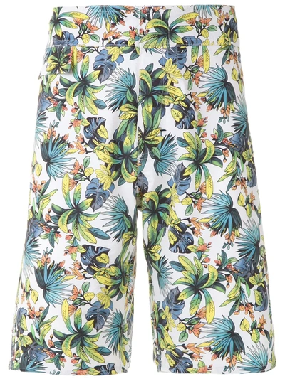 AMIR SLAMA 绿叶花纹泳裤 - 白色