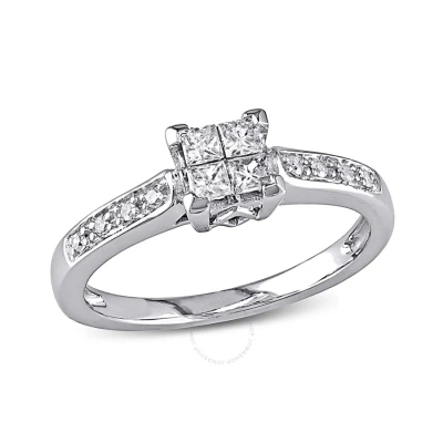 1/4 Ct Tw Princess Cut Quad And Round Diamond Engagement Ring In 10k White Gold In Gold / White
