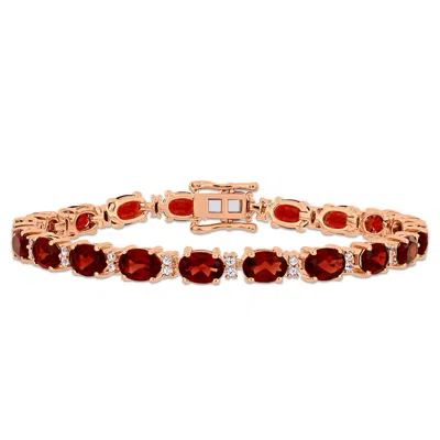 19 5/8 Ct Tgw Garnet And White Sapphire Tennis Bracelet In Rose Plated Sterling Silver In Pink
