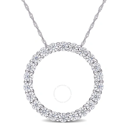2 1/5 Ct Dew Created Moissanite Circle Pendant With Chain In 14k White Gold