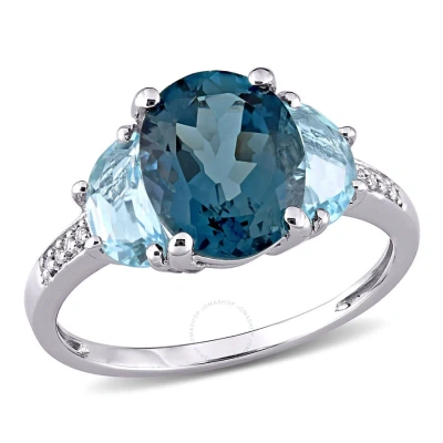 4 1/2 Ct Tgw London And Sky Blue Topaz And Diamond 3-stone Ring In Sterling Silver In White