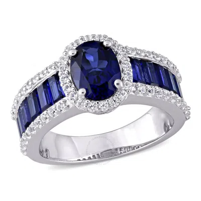 4 3/4 Ct Tgw Created Blue Sapphire And Created White Sapphire Vintage Halo Ring In Sterling Si