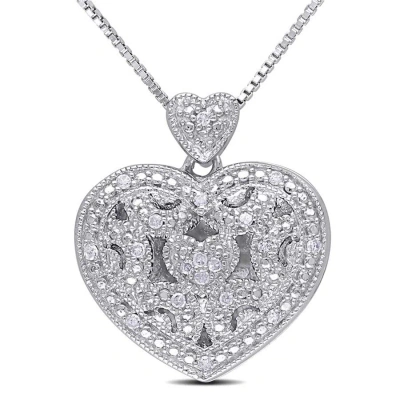 Diamond Heart Locket Pendant With Chain In Sterling Silver