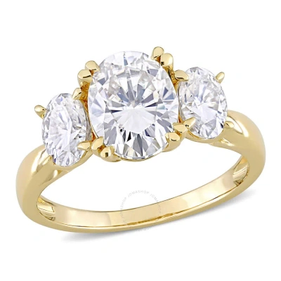 3 Ct Dew Created Moissanite 3-stoneengagement Ring In 10k Yellow Gold