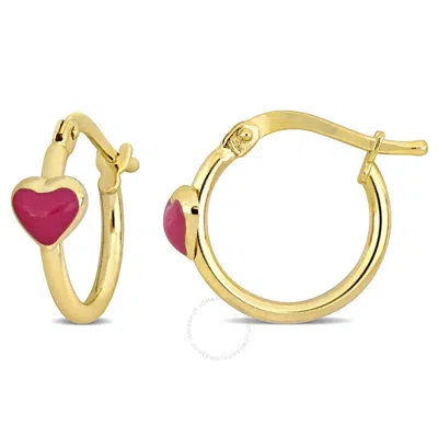 15mm Pink Enamel Heart Hoop Earrings In 14k Yellow Gold