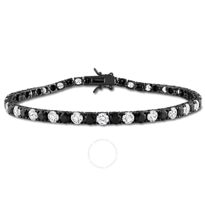 17 Ct Tgw Created White And Black Sapphire Men's Tennis Bracelet In Black Rhodium Plated Sterl