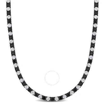 36 Ct Tgw Created Black And White Sapphire Men's Tennis Necklace In Black Rhodium Plated Sterl