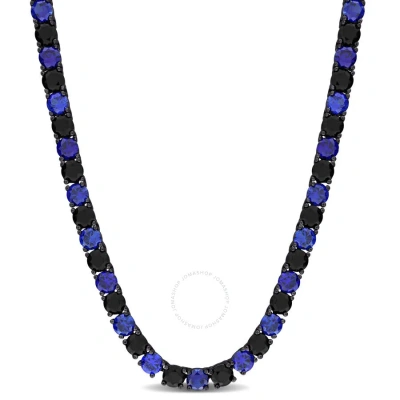 40 Ct Tgw Created Blue And Black Sapphire Men's Tennis Necklace In Black Rhodium Plated Sterli