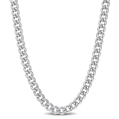 6.5 Mm Curb Link Chain Necklace In Sterling Silver In White