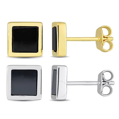 Men's 2-piece Set 2ct Black Onyx And Hematite Square Stud Earrings In Yellow And Sterling Silv