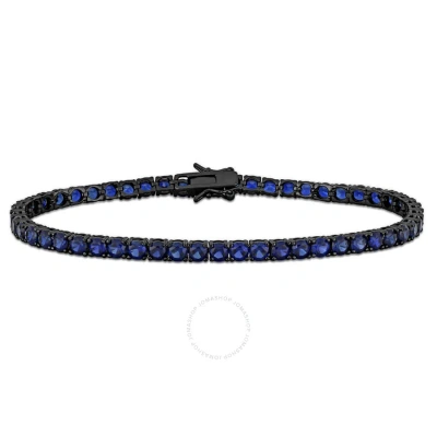17 1/2 Ct Tgw Created Blue Sapphire Men's Tennis Bracelet In Black Rhodium Plated Sterling Sil
