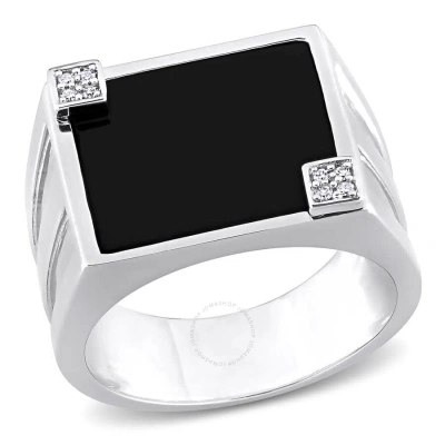 5 Ct Tgw Square Black Onyx And Diamond Accent Men's Ring In Sterling Silver In White