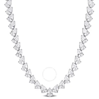 39 1/2 Ct Tgw Created White Sapphire Teardrop Tennis Necklace In Sterling Silver