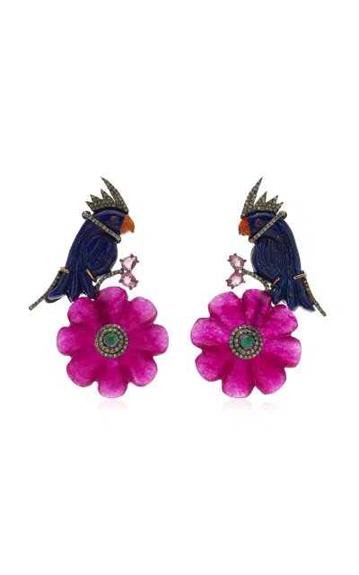 18k Yellow Gold And Silver Tanzanite And Diamond Earrings In Blue