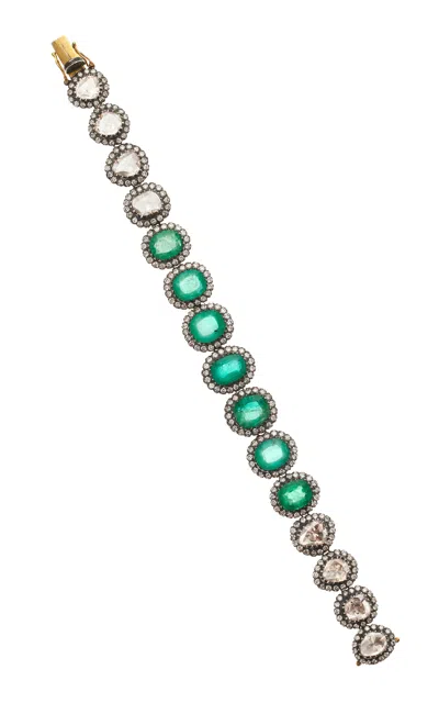 One-of-a-kind Rajasthan 18k Yellow Gold Emerald; Diamond Bracelet In Green