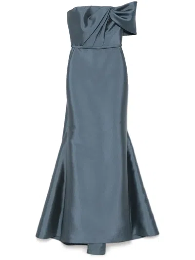 Bow Midi Satin Cocktail Dress In Smokey Blue