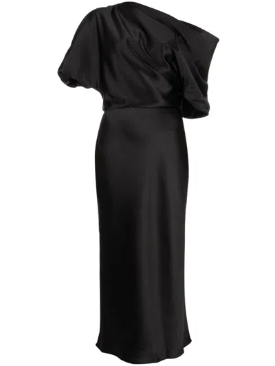 露肩垂坠中长连衣裙