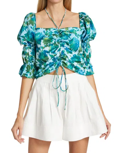 Women's Raveena Puff-sleeve Top In White Multi