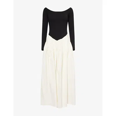 Womens Milk Alexa Puffed-hem Stretch-woven Midi Dress In Cream