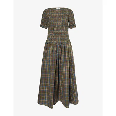 Womens Green Beatrix Check-print Cotton-poplin Maxi Dress In Multi