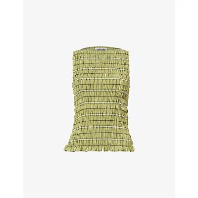 Womens Green Shirred Check-print Woven Top