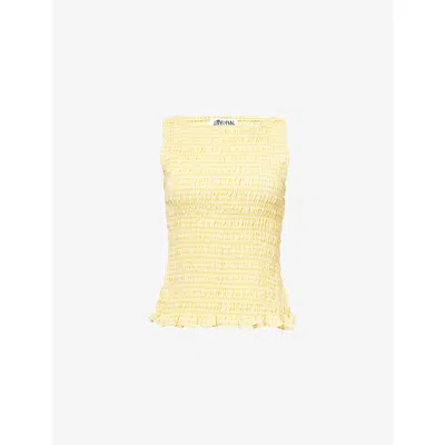 Womens Lemon Shirred Lace Stretch-woven Top In Yellow