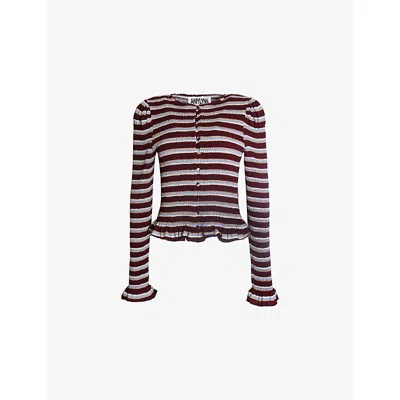 Womens Brown Yasmine Striped Smocked Cotton Shirt
