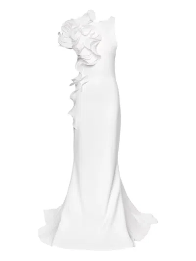 玫瑰缀饰缎面超长连衣裙
