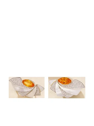 18k White Gold Mogra Multi-stone Earrings In Metallic