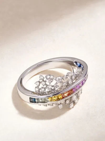 18k White Gold Scatter Energy Diamond And Sapphire Ring In Metallic